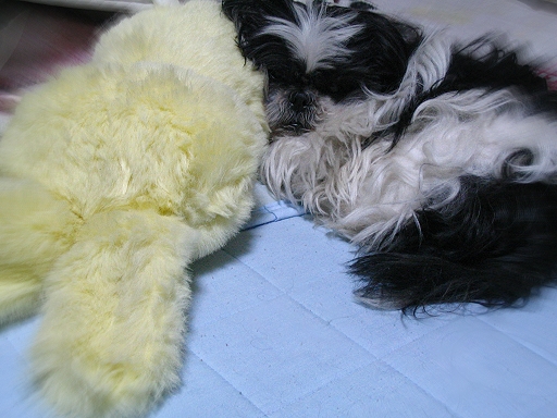 パッチ父さんのほっぺた枕に・・・w